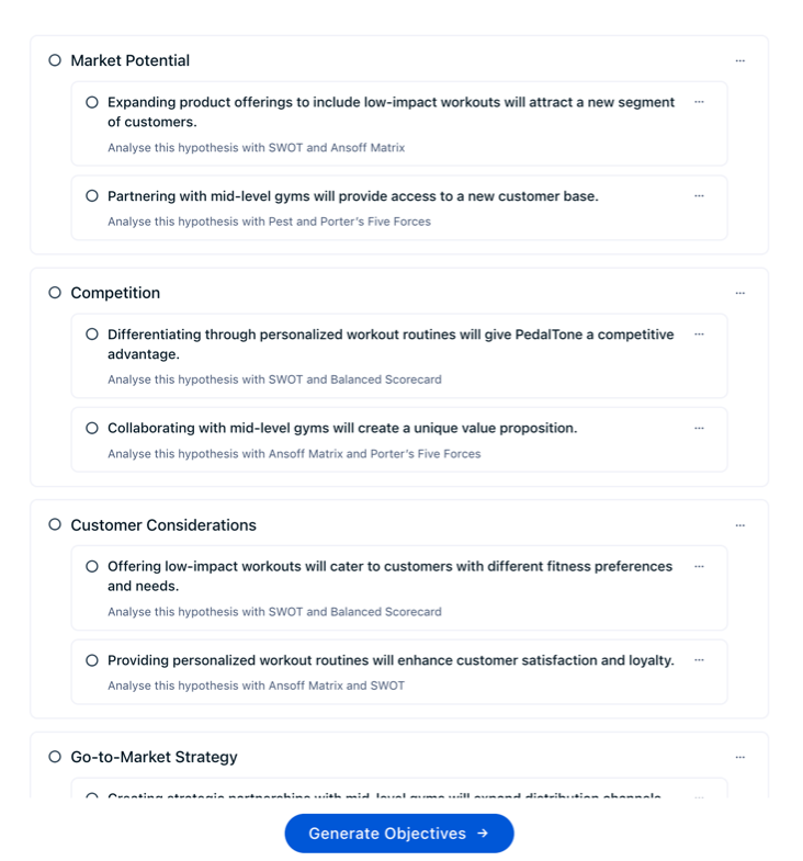 This seamless translation of strategic pivots into strategic goals significantly sped up the decision-making and planning process, allowing PedalTone to drive action quickly.